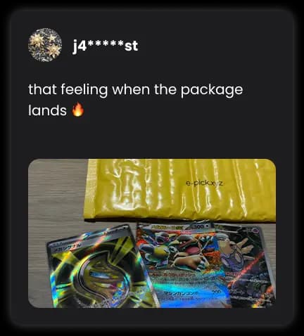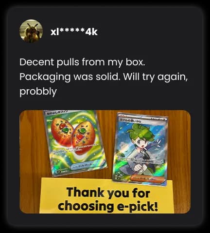 e-pick is an innovative online sales platform specifically designed for trading card game collectors. Users can purchase items by "opening" e-pick's original mystery boxes. Once you acquire an item, you have two options: you can exchange it for points via our buyback offer, or you can redeem it to have it delivered right to your doorstep!